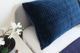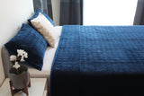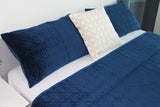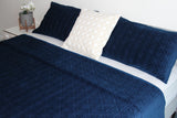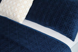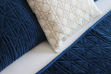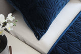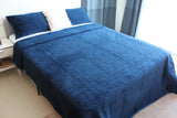 Royal Blue Velvet King Sized Geometric Design Bedcover/Bedspread with 2 Pillow Covers