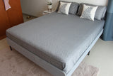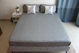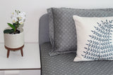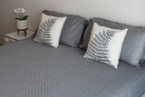 | Our pure cotton based floral self print design bedsheet is a treat for your home as it intricates a beautiful white floral self pattern on a gray base. This bedsheet comes with 2 matching pillow covers. This can be well paired with neutral/plain quilts/blankets and to top it you could throw a few neutral shaded cushions to give it the complete look. Bedsheet in picture is on a queen sized bed frame. Illustration purposes only. Thread Count : 300 Material : Pure Cotton Size : King Size Dimensions : 90 X 100 Inches (228.6 X 254 cms) Base Colour : Grey Print Colour : White Machine Washable : Yes Quality : A++ Reversible Pillow Covers : 2 Inner Packaging : Folded onto hard cardboard for firm packaging Outer Packaging : re-usable soft PVC case Fabric Care : Machine Wash on gentle cycle, do not bleach, do not tumble dry. Iron on Medium Heat. Made in India Disclaimer : We do our best to photograph the product to show how it will appear in person, but due to the different screen resolutions, the colour may vary. |